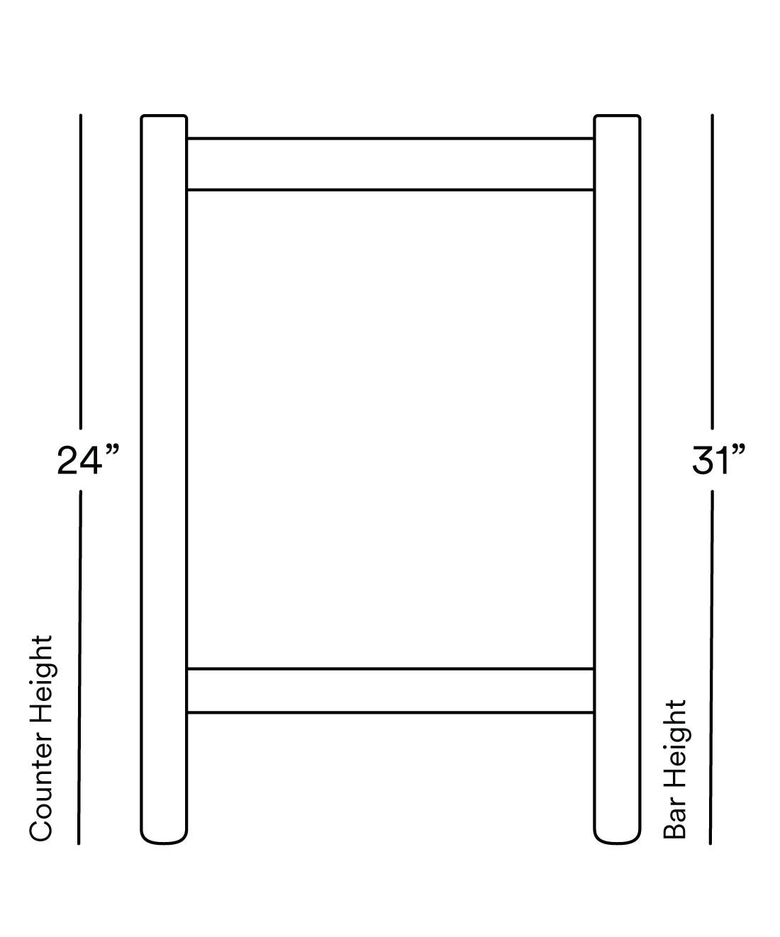 Bar Height  18” Width  |    14” Depth  |  31  Height
